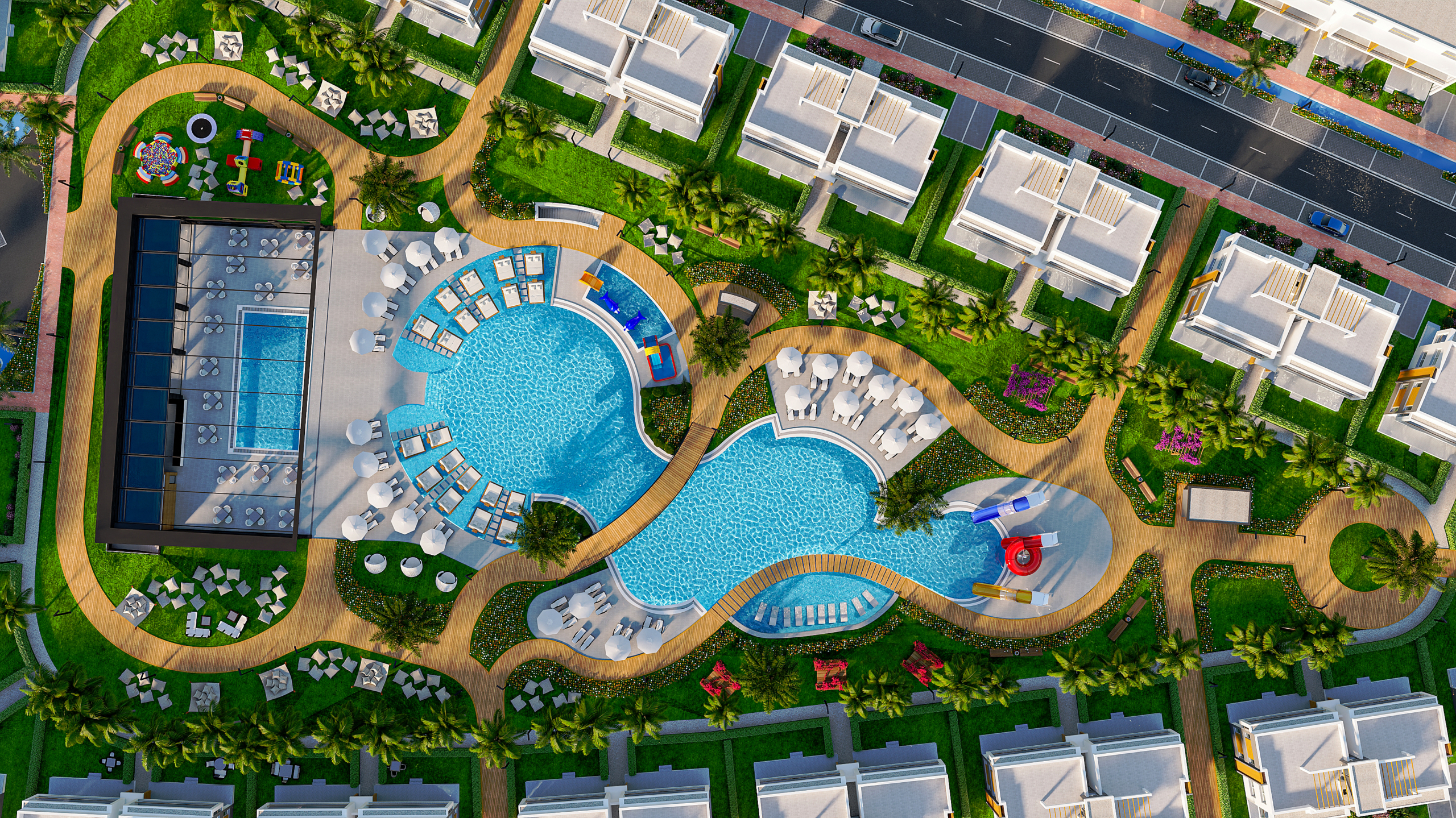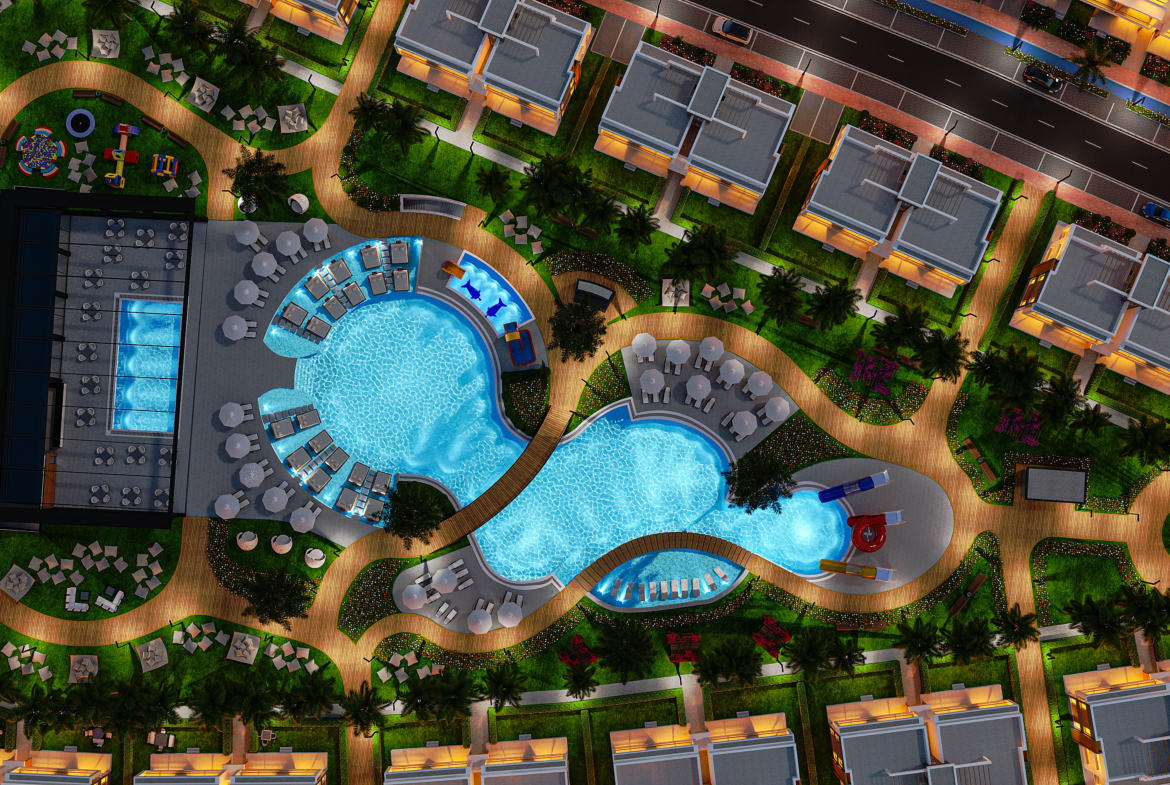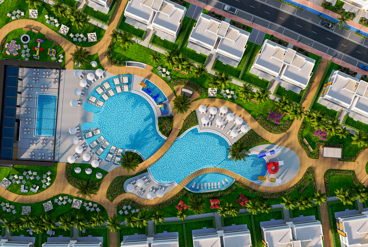 Built on a land of 162,000m2 It is designed with a dream of a life that integrates and makes you feel the simplest and most beautiful geographic life of Iskele.